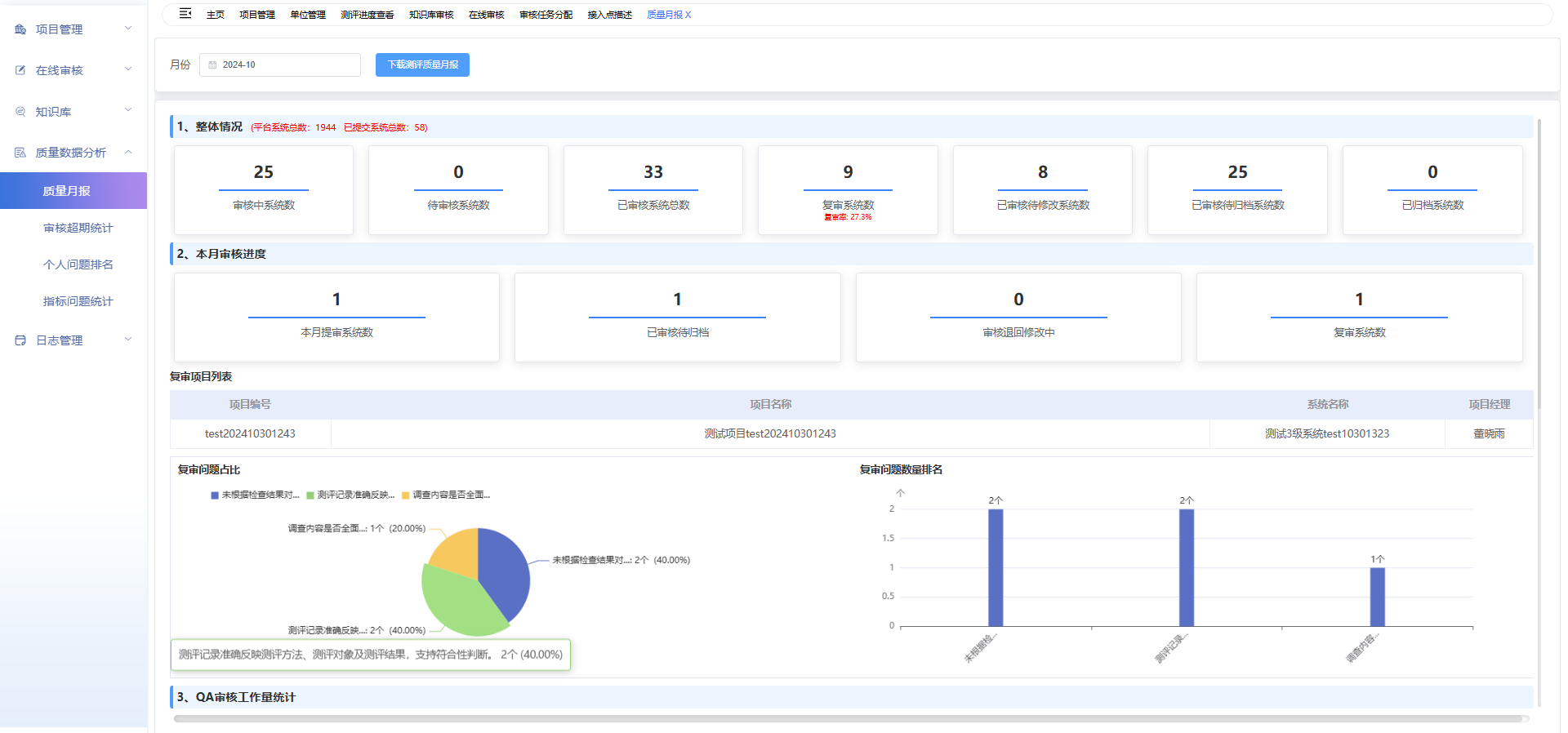 重塑测评整体工作:呈现项目进展与质量状况的深度数字化分析报告,为机构精准定位测评改进方向提供坚实的数据基石。